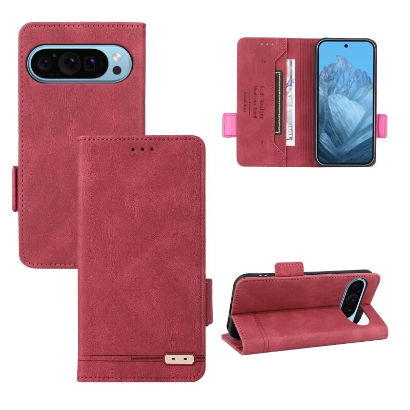 Για Google Pixel 9 Pro XL Μαγνητικό κούμπωμα Δερμάτινη θήκη τηλεφώνου (κόκκινο)