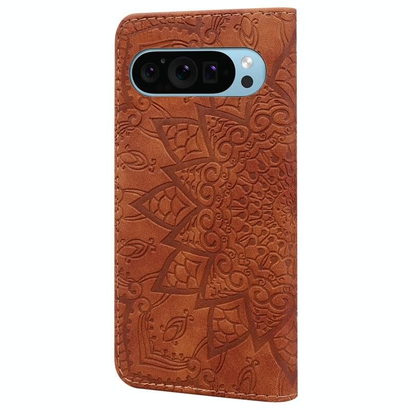 Για το Google Pixel 9 Pro XL Mandala ανάγλυφο Dual-Fold Calf Δερμάτινη θήκη τηλεφώνου (καφέ)