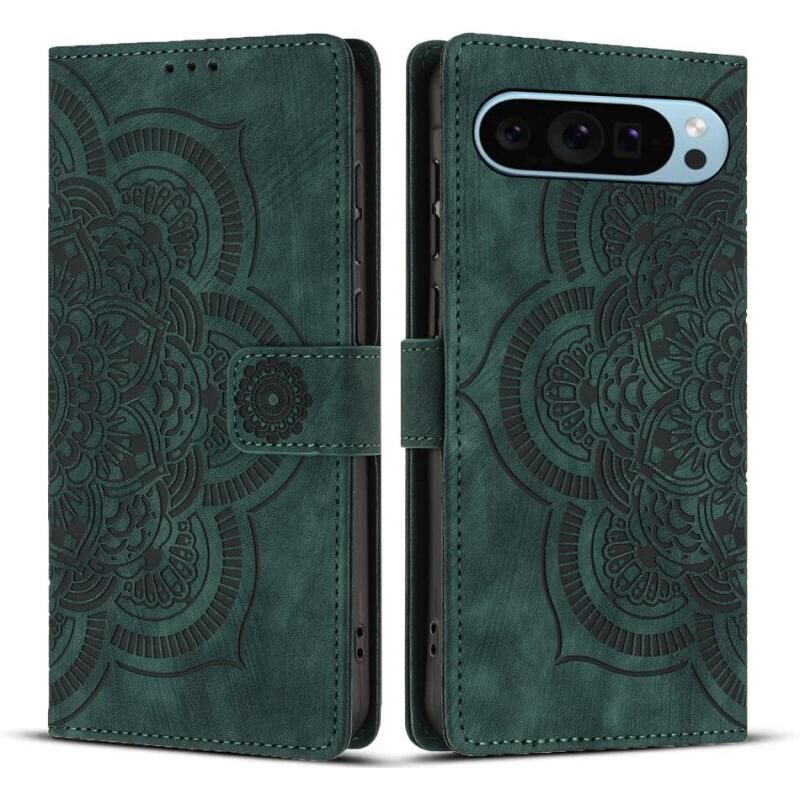 For Google Pixel 9 Pro XL Mandala Embossed Retro Frosted Leather Phone Case(Green)