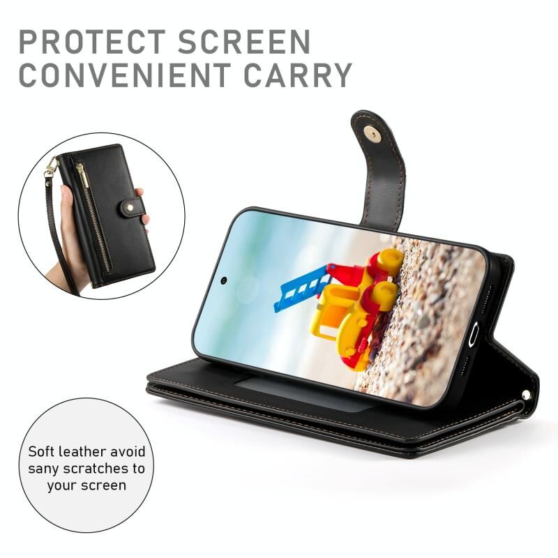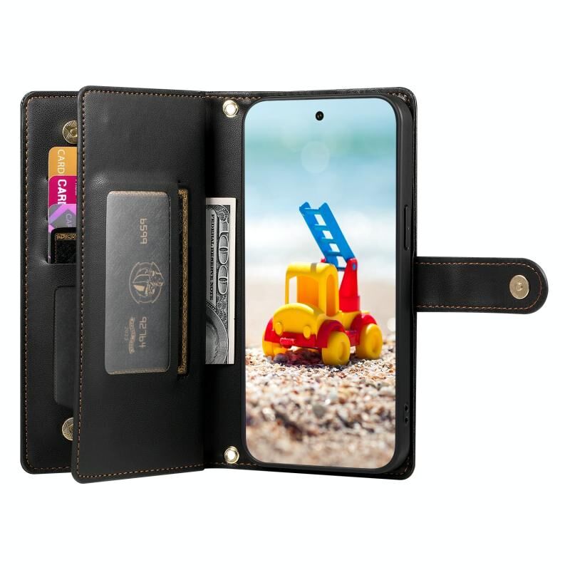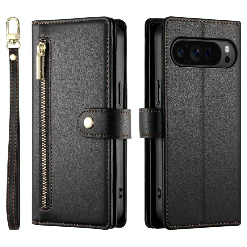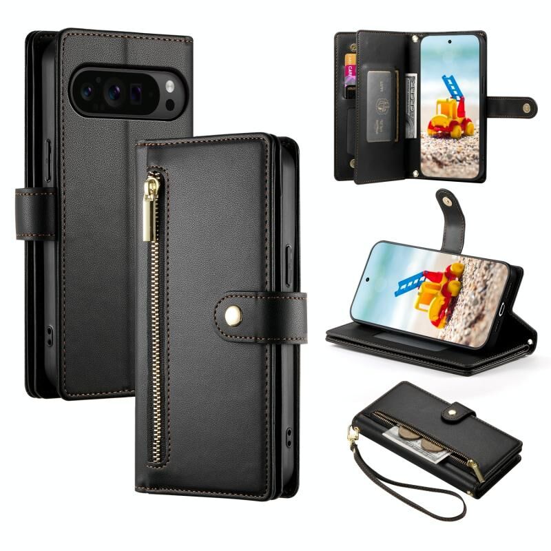 Για το Google Pixel 9 Pro XL Εννέα Card-slot φερμουάρ πορτοφόλι τσάντα δέρμα τηλέφωνο υπόθεση (μαύρο)