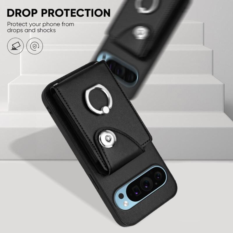Για το Google Pixel 9 Pro XL Organ Card Bag Ring Holder θήκη τηλεφώνου με μακρύ κορδόνι (Μαύρο)
