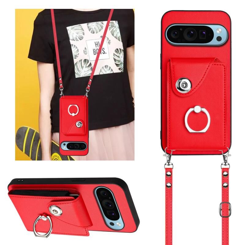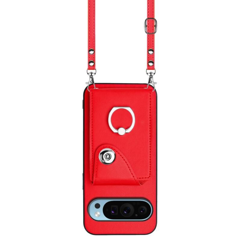 Για το Google Pixel 9 Pro XL Organ Card Bag Ring Holder θήκη τηλεφώνου με μακρύ κορδόνι (κόκκινο)