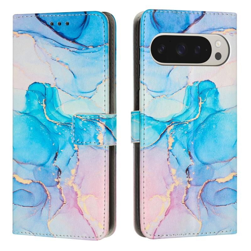 Θήκη τηλεφώνου από δέρμα με σχέδιο μαρμάρου (Μπλε Πράσινο) για Google Pixel 9 Pro XL