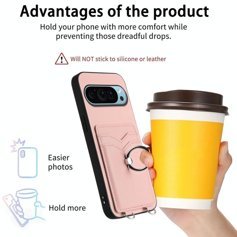 Θήκη τηλεφώνου Google Pixel 9 Pro XL R20 με κορδόνι, δακτύλιο και θήκη καρτών (Ροζ)