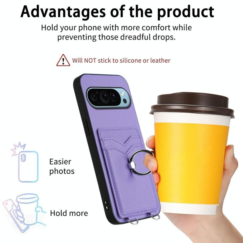 Για το Google Pixel 9 Pro XL R20 Δαχτυλίδι Κάτοχος κάρτας θήκη τηλεφώνου (μωβ)
