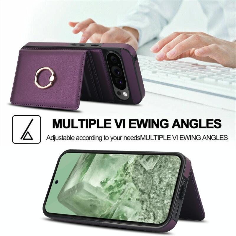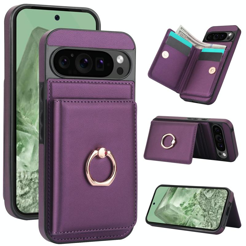 For Google Pixel 9 Pro XL RFID Anti-theft Card Ring Holder Phone Case(Dark Purple)