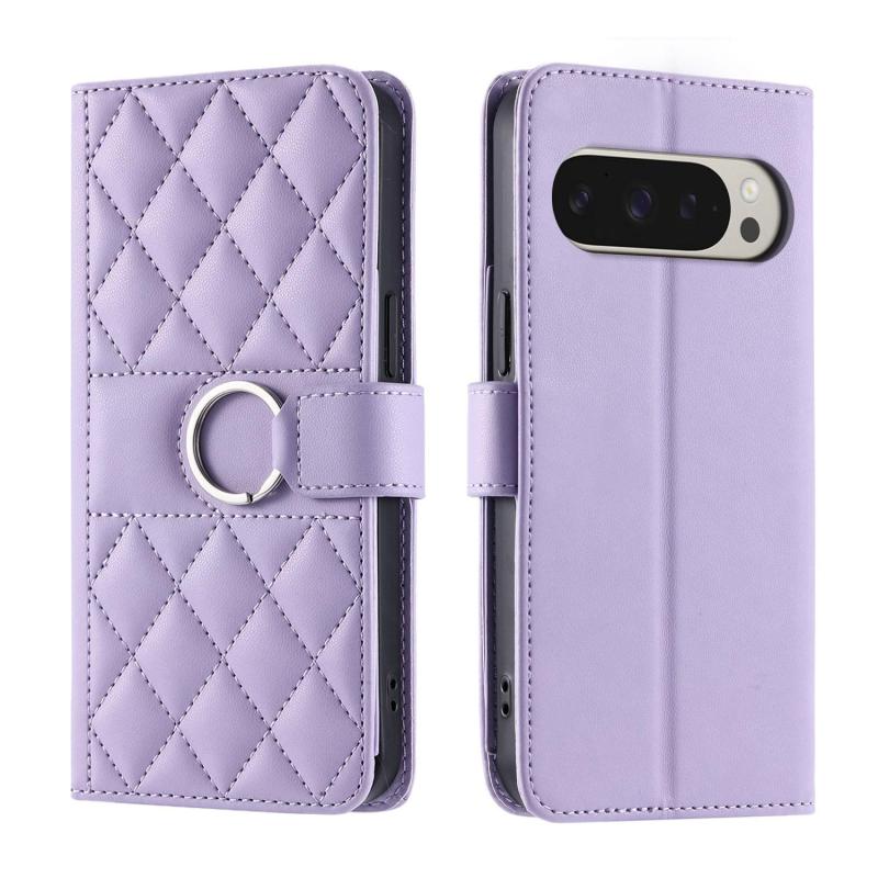 For Google Pixel 9 Pro XL Ring Buckle Rhombic Leather Phone Case(Purple)