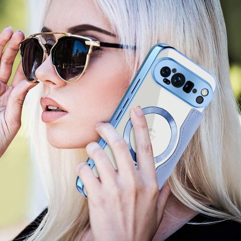 Θήκη τηλεφώνου δερμάτινη με προστασία MagSafe, RFID και αντι-κλοπής για Google Pixel 9 Pro XL (Μπλε)