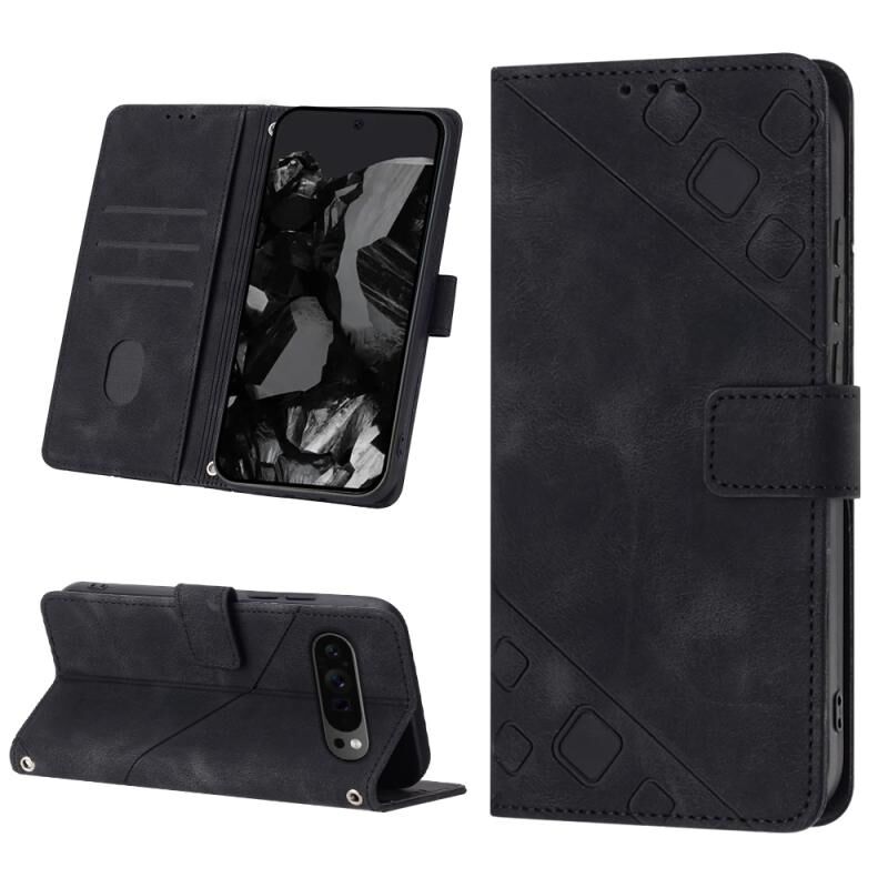 For Google Pixel 9 Pro XL Skin-feel Embossed Leather Phone Case(Black)