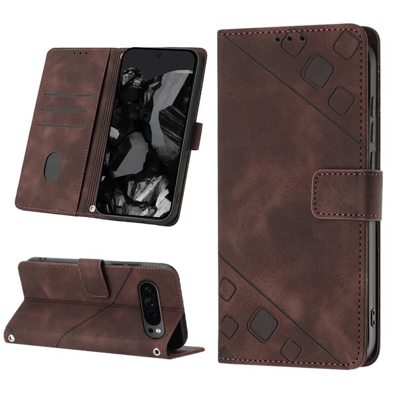 For Google Pixel 9 Pro XL Skin-feel Embossed Leather Phone Case(Brown)