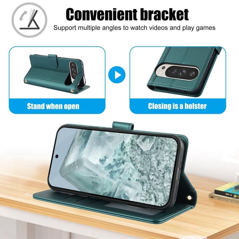 Για το Google Pixel 9 Pro XL Skin Feel Pure Color Card Slots Δερμάτινη θήκη τηλεφώνου με διπλό κορδόνι (πράσινο)