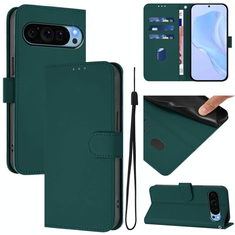 Για το Google Pixel 9 Pro XL Skin Feel Solid Color Δερμάτινη θήκη τηλεφώνου με κορδόνι (σκούρο πράσινο)