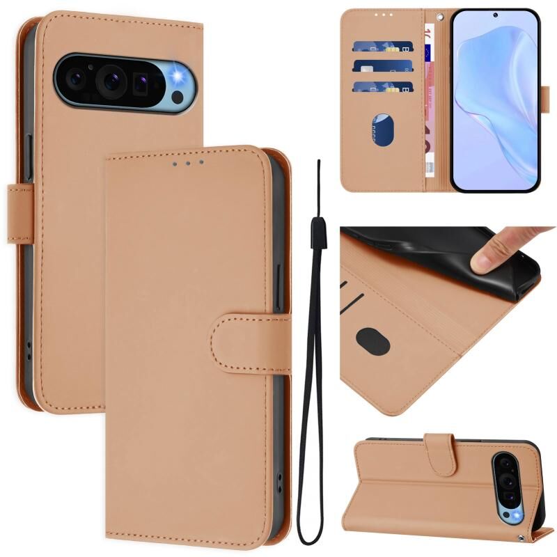 Για το Google Pixel 9 Pro XL Skin Feel Solid Color Δερμάτινη θήκη τηλεφώνου με κορδόνι (Nude)