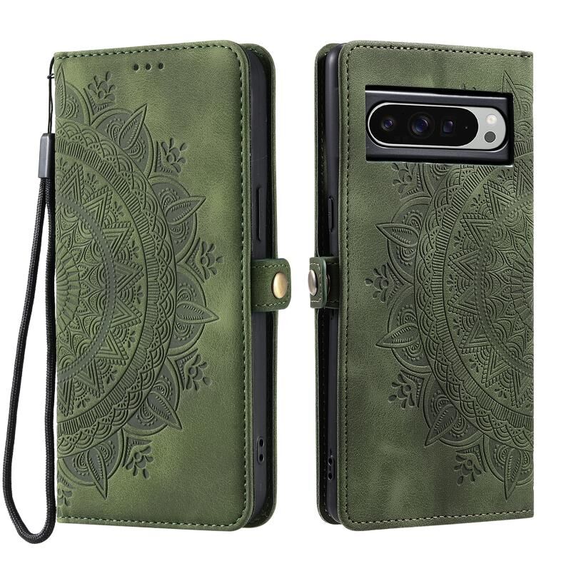 Για το Google Pixel 9 Pro XL Skin Feel Totem ανάγλυφη δερμάτινη θήκη τηλεφώνου (βαθύ πράσινο)