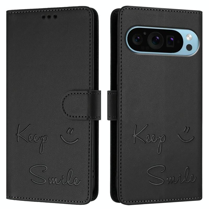 Για το Google Pixel 9 Pro XL Χαμόγελο ανάγλυφο RFID δερμάτινη θήκη τηλεφώνου (Μαύρο)