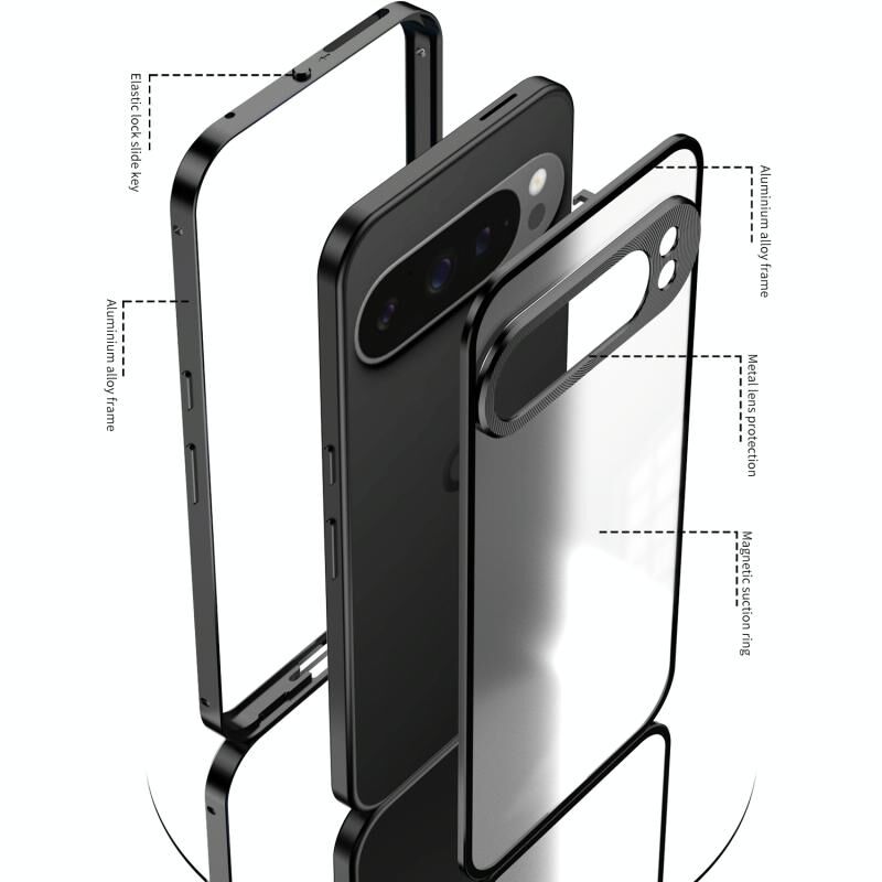 Για το Google Pixel 9 Pro XL Snap πόρπη μεταλλικό πλαίσιο Frosted υπόθεση τηλεφώνου (ασημί)