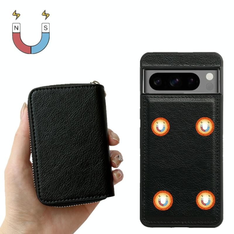 Για Google Pixel 9 Pro XL Αμιγές χρώμα φερμουάρ 11-κάρτα υποδοχές τσάντα υπόθεση τηλεφώνου με κορδόνι (μαύρο)