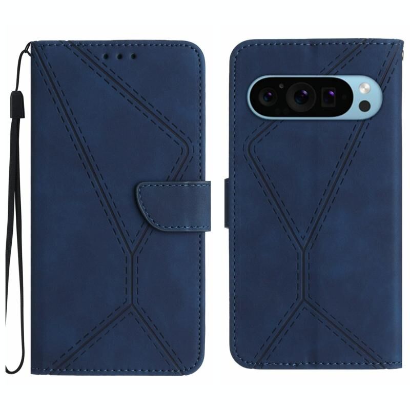 Για το Google Pixel 9 Pro XL Stitching ανάγλυφη δερμάτινη θήκη τηλεφώνου (μπλε)