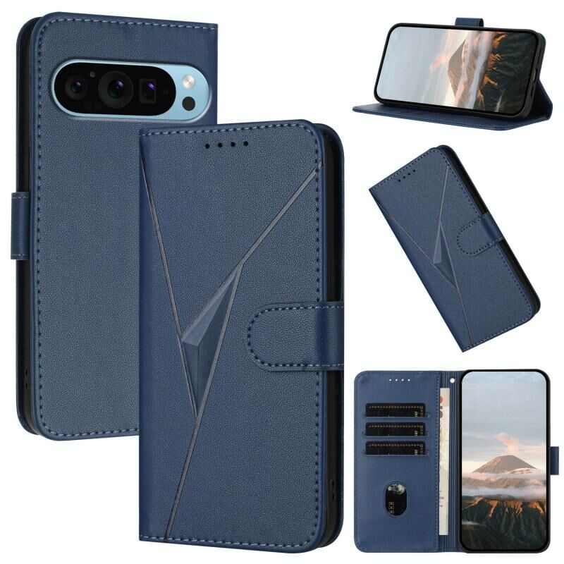 Για το Google Pixel 9 Pro XL Τρίγωνο μοτίβο πόρπη κούμπωμα δερμάτινη θήκη τηλεφώνου (Royal Blue)