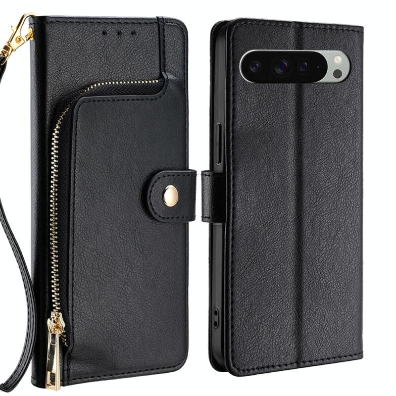 Για το Google Pixel 9 Pro XL φερμουάρ τσάντα δερμάτινη θήκη τηλεφώνου (μαύρο)
