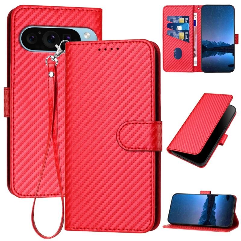 For Google Pixel 9 Pro YX0070 Carbon Fiber Buckle Leather Phone Case with Lanyard(Red)