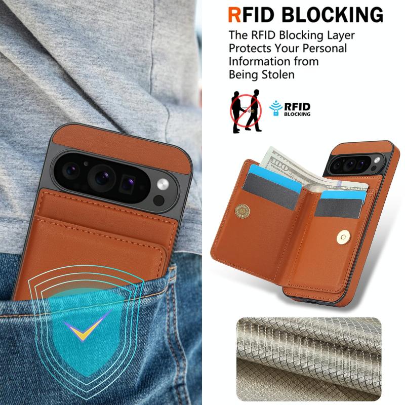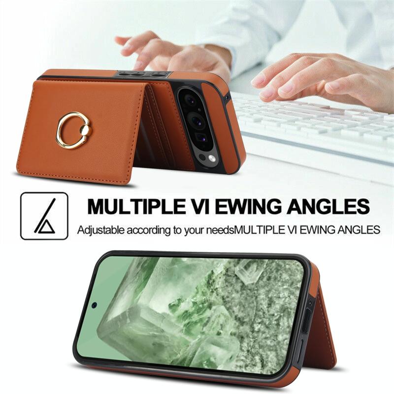 For Google Pixel 9 RFID Anti-theft Card Ring Holder Phone Case(Brown)