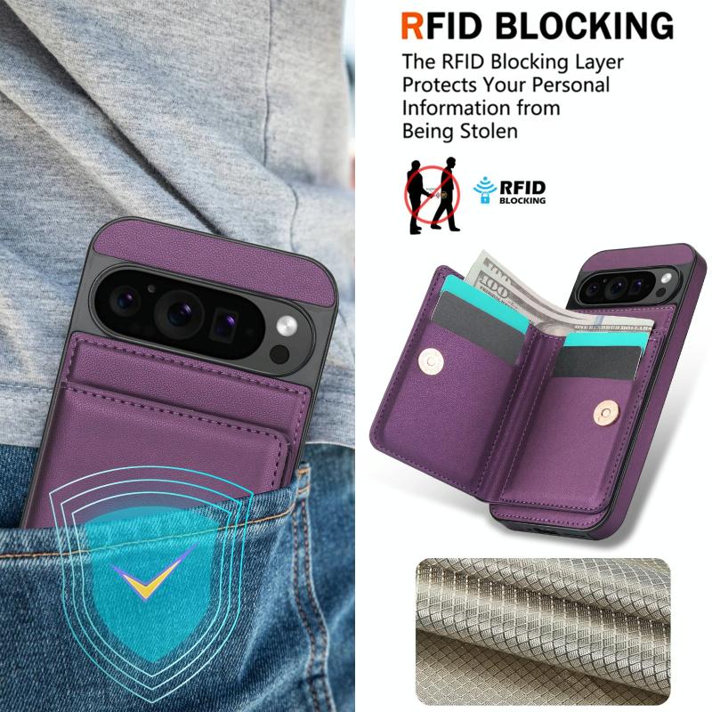 For Google Pixel 9 RFID Anti-theft Card Ring Holder Phone Case(Dark Purple)