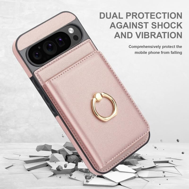 For Google Pixel 9 RFID Anti-theft Card Ring Holder Phone Case(Rose Gold)