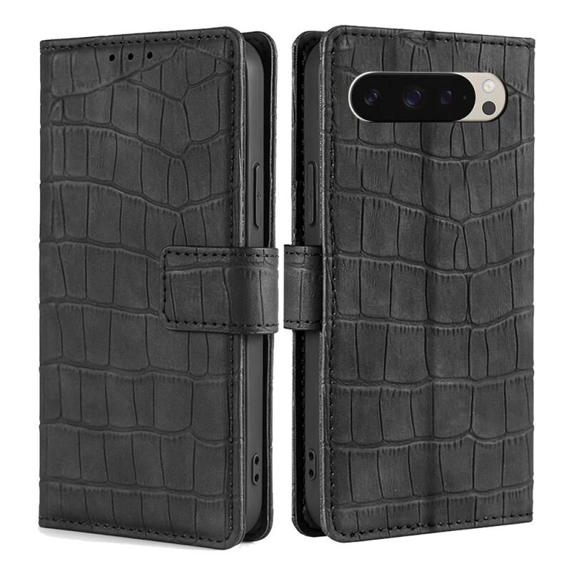 Θήκη τηλεφώνου από δέρμα με μαγνητικό κούμπωμα και υφή κροκόδειλου για Google Pixel 9 (Μαύρο)