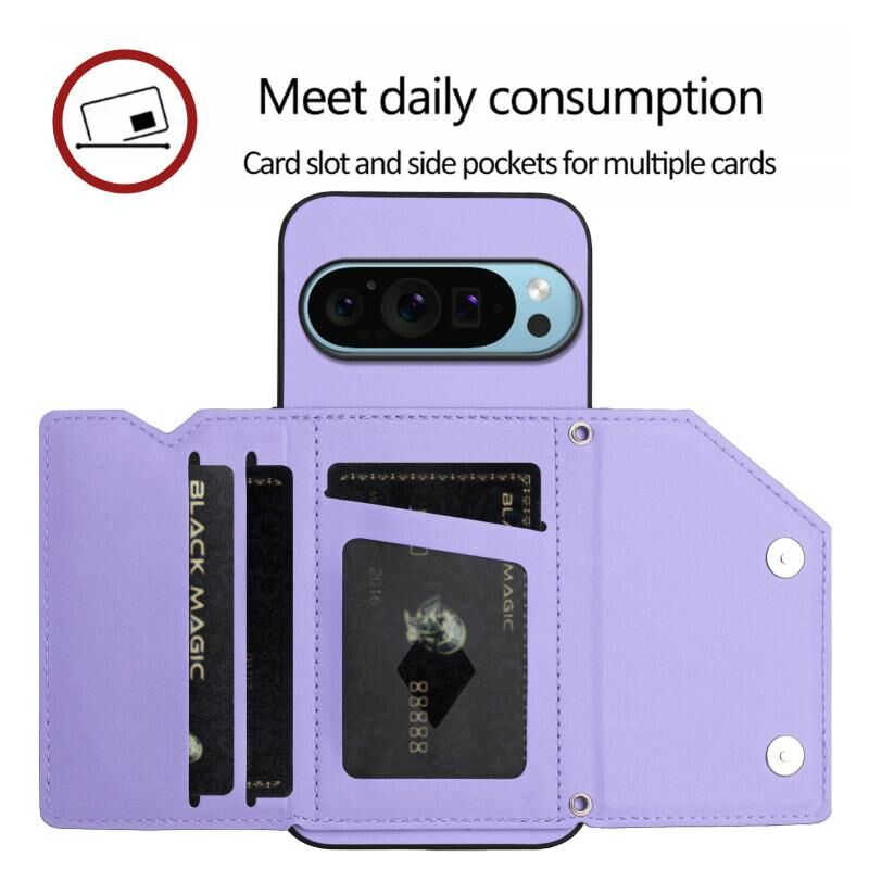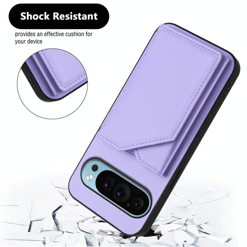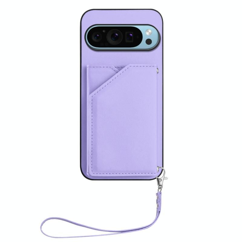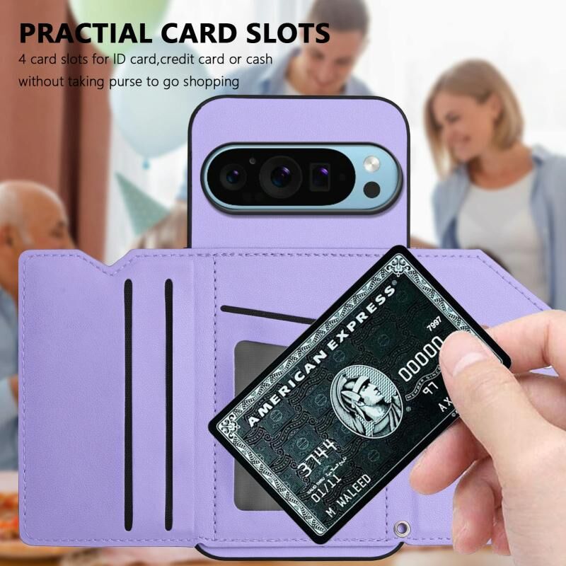 Για το Google Pixel 9 Skin Feel Τέσσερις υποδοχές καρτών υπόθεση τηλεφώνου με λουράκι καρπού (μωβ)