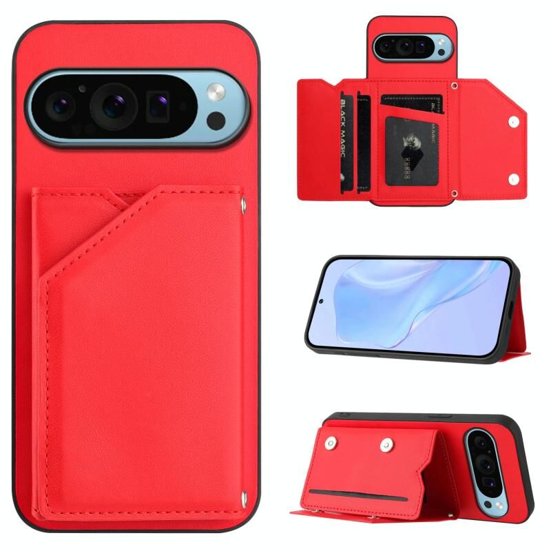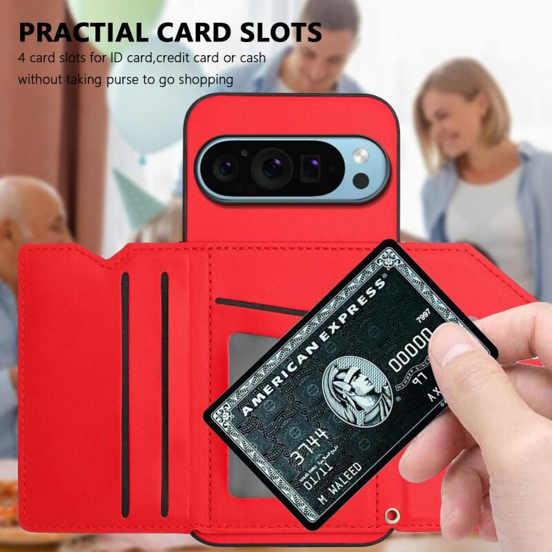 Για το Google Pixel 9 Skin Feel Τέσσερις υποδοχές καρτών υπόθεση τηλεφώνου με λουράκι καρπού (κόκκινο)