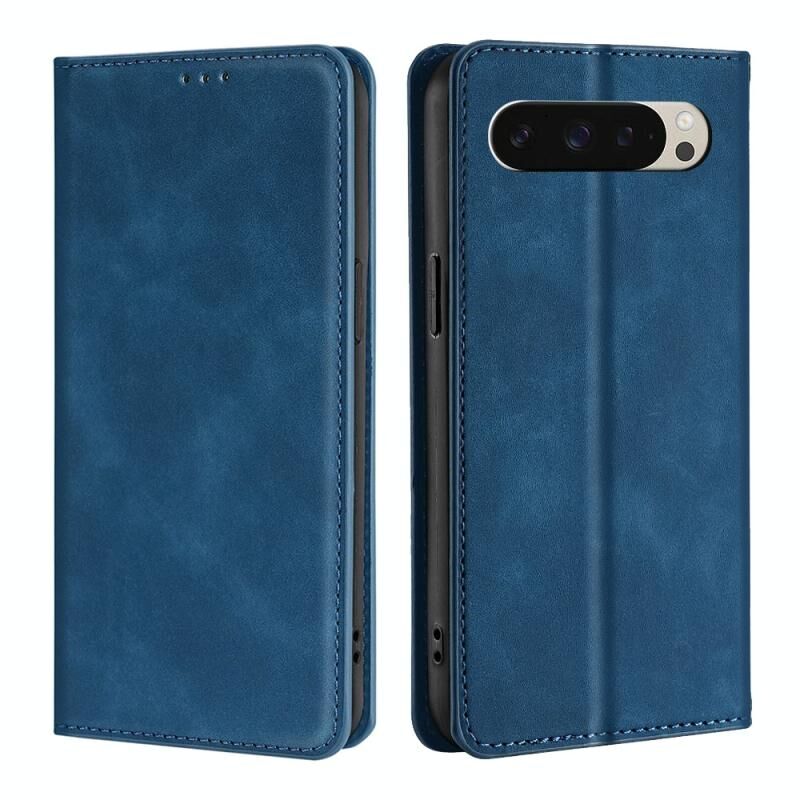 Για το Google Pixel 9 Skin Feel Μαγνητική δερμάτινη θήκη τηλεφώνου (μπλε)
