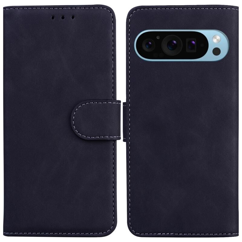 Για το Google Pixel 9 Skin Feel Pure Color Flip Leather Phone Case (Μαύρο)