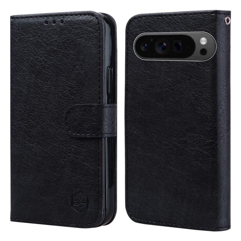 Θήκη κινητού τηλεφώνου Google Pixel 9 με υφή δέρματος λαδιού, PU + TPU (Μαύρο)