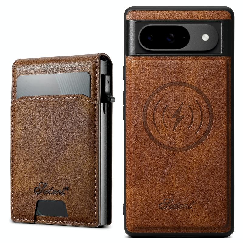 For Google Pixel 9 Suteni H19 Oil Wax 2-in-1 MagSafe Removable Card Box Back Phone Case(Brown) (Suteni)
