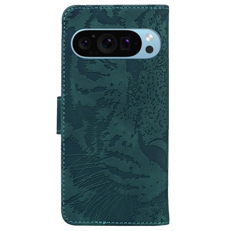 Θήκη τηλεφώνου από δέρμα με σχέδιο Tiger Embossing για Google Pixel 9 (Μαύρο)