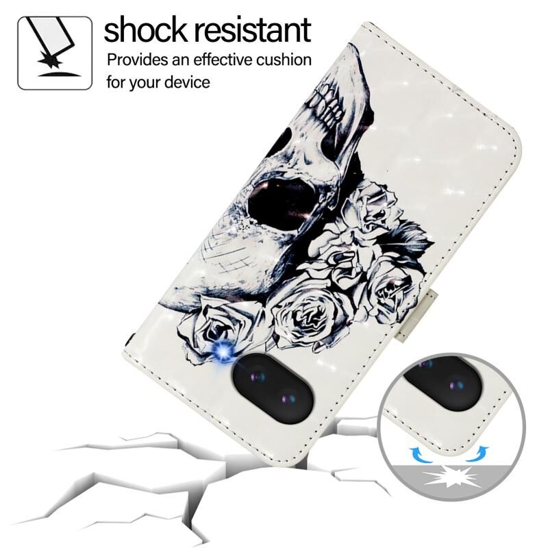 Θήκη τηλεφώνου από δέρμα με οριζόντια αναδίπλωση και τρισδιάστατη ζωγραφική για Google Pixel 9a (Κρανίο)