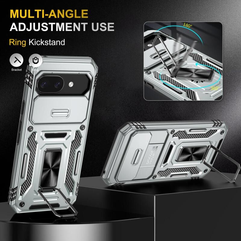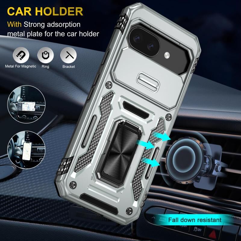 For Google Pixel 9a Armor PC + TPU Camera Shield Phone Case(Grey)