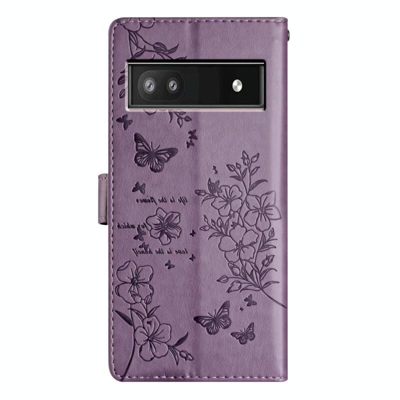 Θήκη τηλεφώνου από δέρμα για Google Pixel 9a Πεταλούδες και Λουλούδια (Μαύρο)