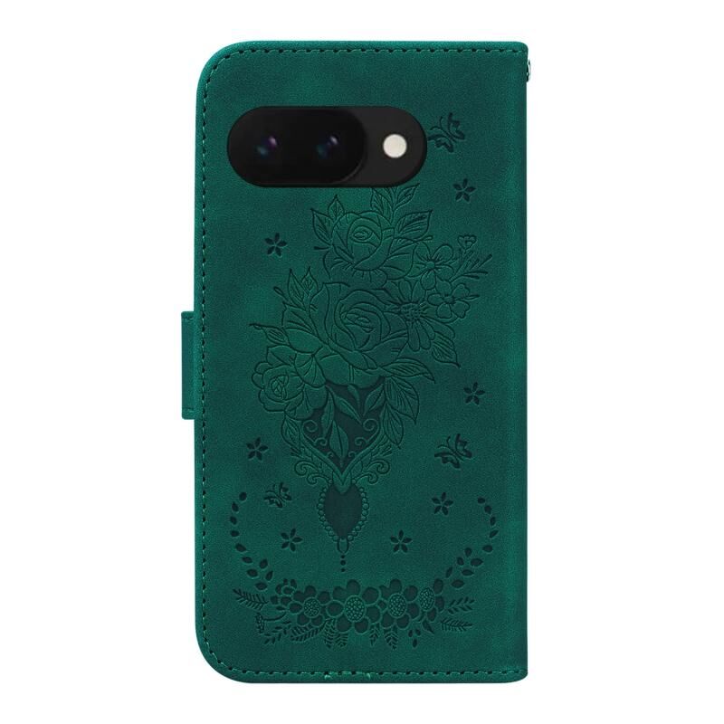 For Google Pixel 9a Butterfly Rose Embossed Leather Phone Case(Green)