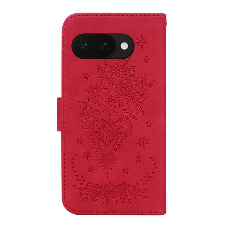 For Google Pixel 9a Butterfly Rose Embossed Leather Phone Case(Red)