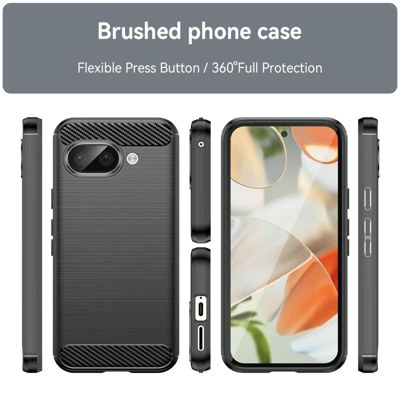 Για το Google Pixel 9a Carbon Fiber βουρτσισμένη υφή TPU υπόθεση τηλεφώνου (μαύρο)