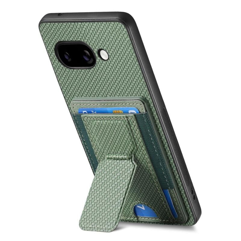 For Google Pixel 9a Carbon Fiber Fold Stand Elastic Card Bag Phone Case(Green)