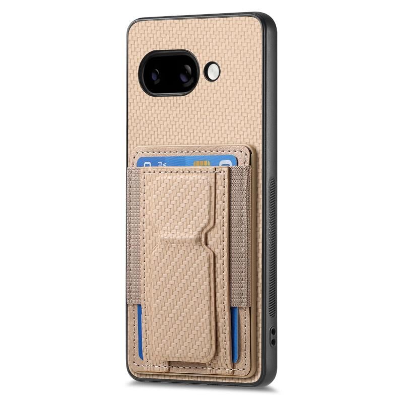 For Google Pixel 9a Carbon Fiber Fold Stand Elastic Card Bag Phone Case(Khaki)