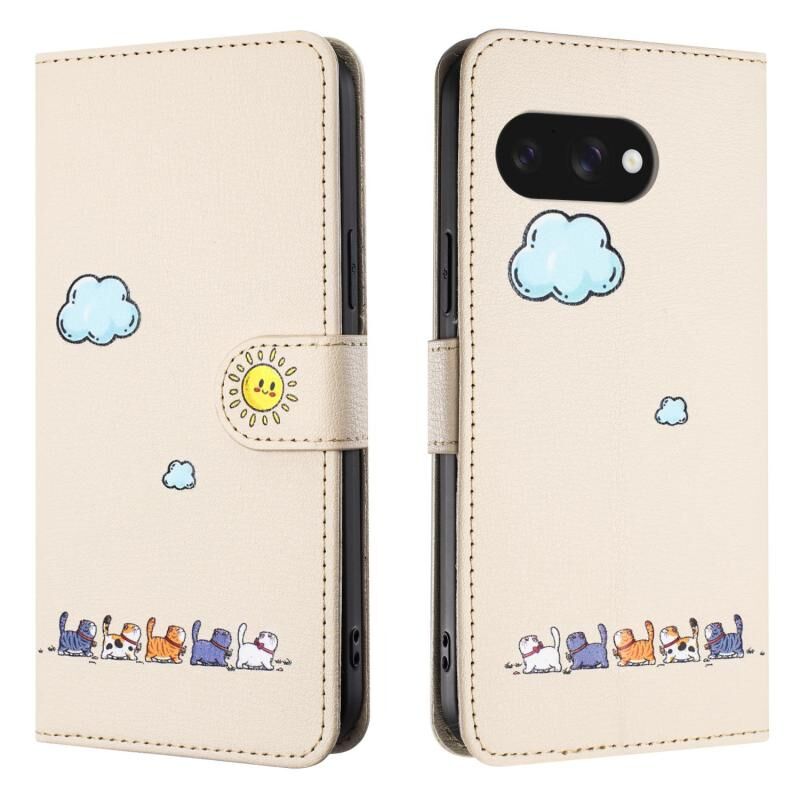 For Google Pixel 9a Cartoon Cats Leather Phone Case(Beige White)