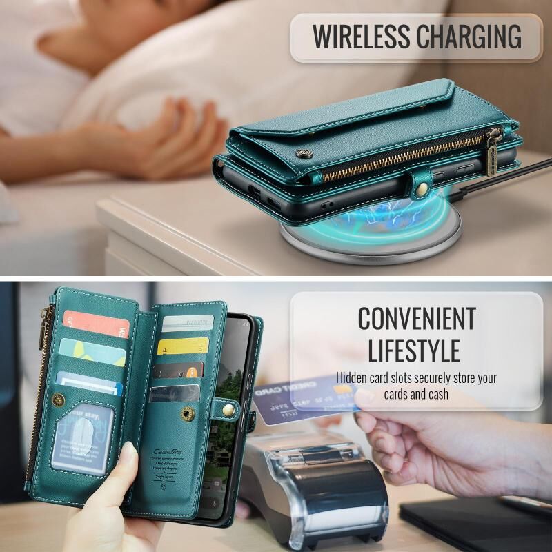 6. 10 Card Slots + 2 Money Clip Positions + 1 Zipper Pouch + Long Shoulder Strap Lanyard + Short Hand Strap (Actual subject to picture)