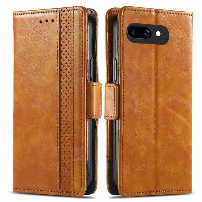 For Google Pixel 9a CaseNeo Splicing Dual Magnetic Buckle Leather Phone Case(Khaki)