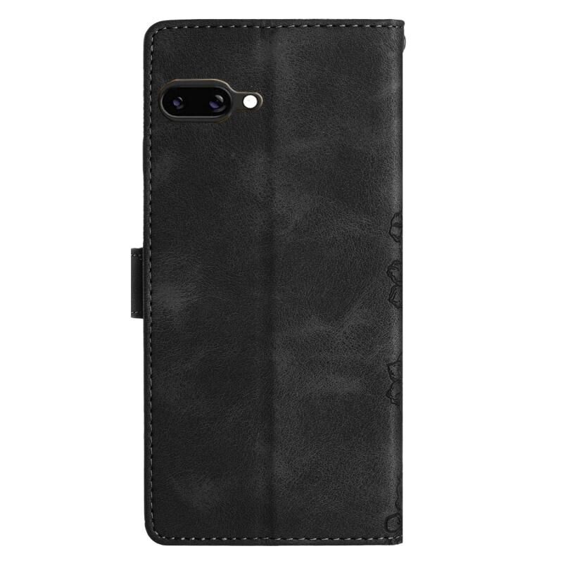 For Google Pixel 9a Cherry Blossom Butterfly Skin Feel Embossed PU Phone Case(Black)