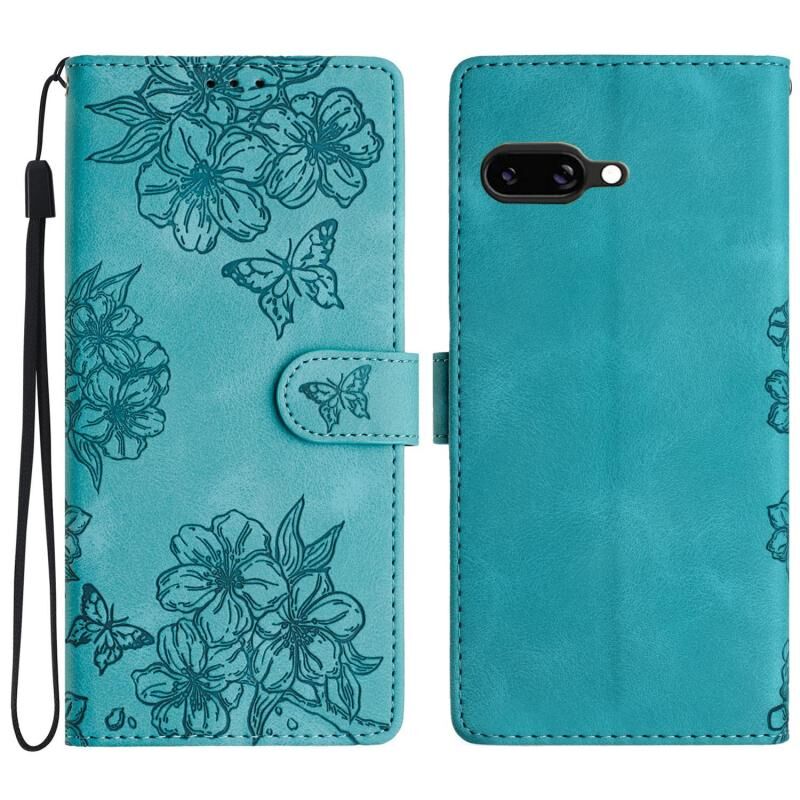 For Google Pixel 9a Cherry Blossom Butterfly Skin Feel Embossed PU Phone Case(Green)