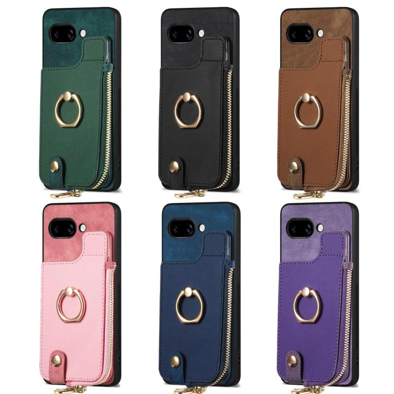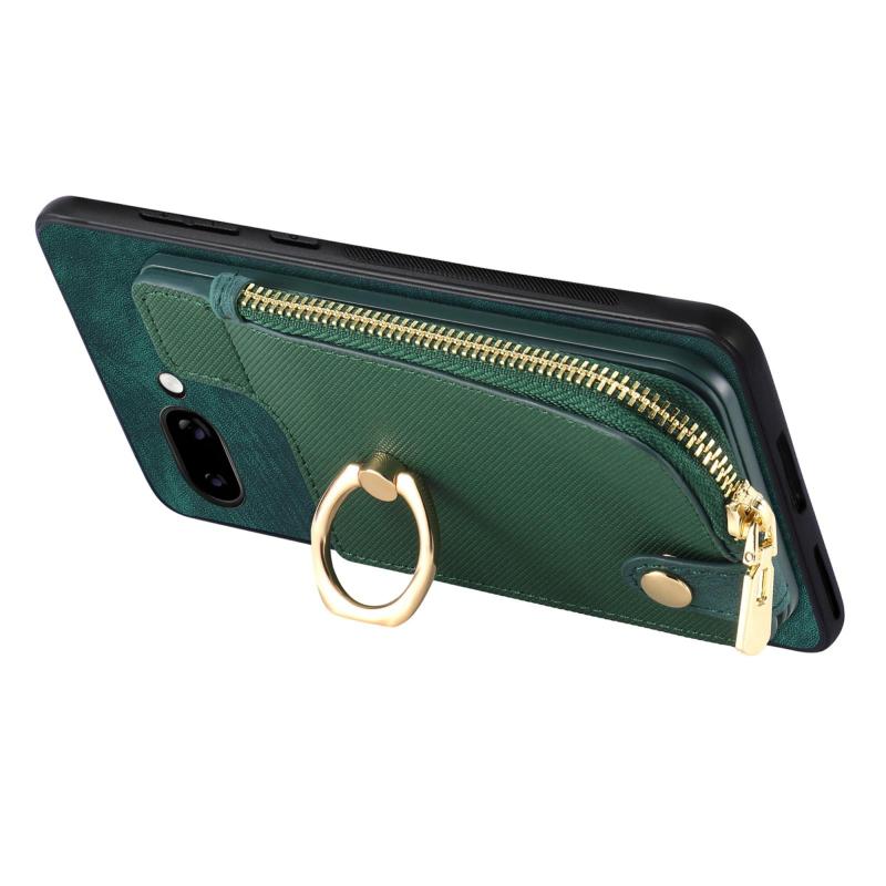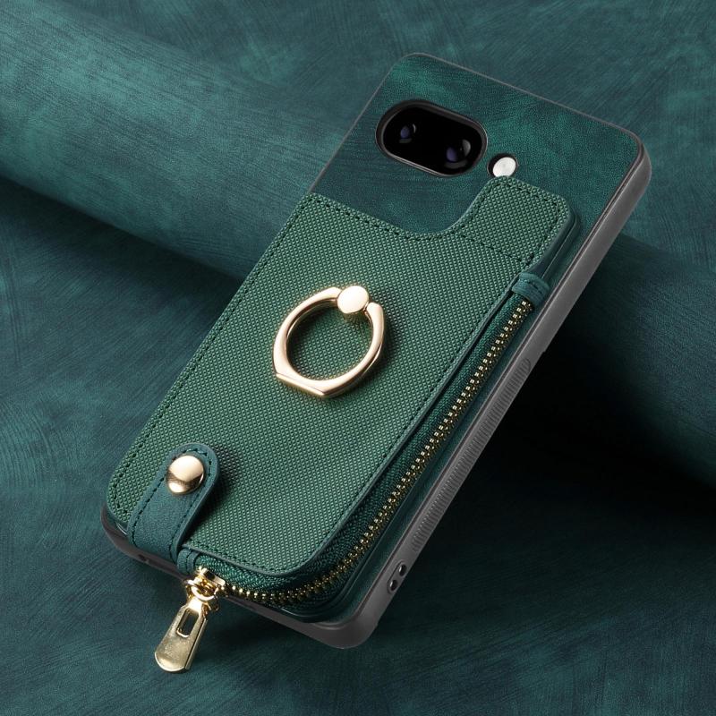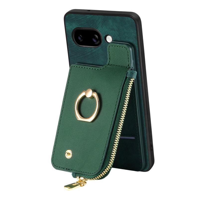 Για Google Pixel 9a Δερμάτινη Θήκη με Δαχτυλίδι & Φερμουάρ (Πράσινο)